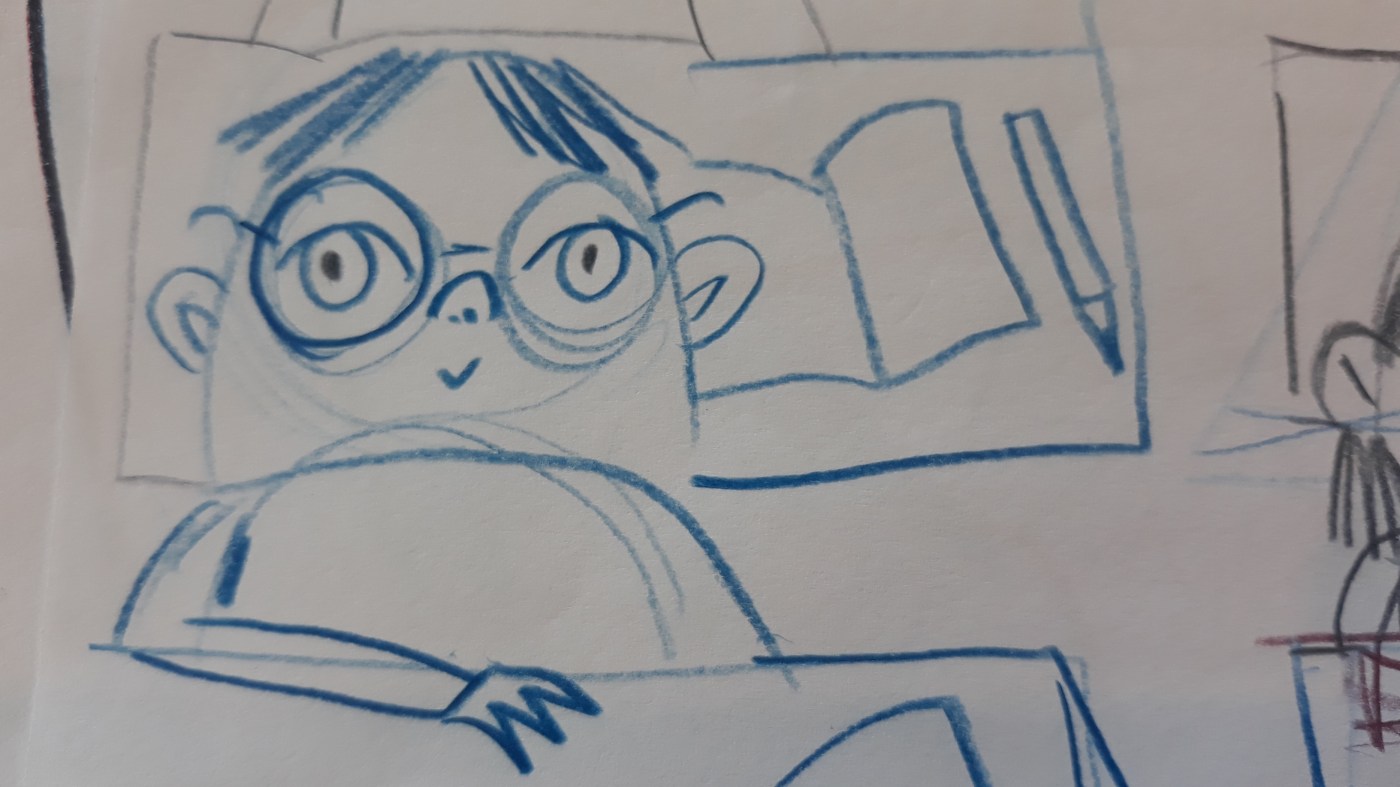 Teniendo en cuenta la pecualiaridad del formato de Una mà de contes, los bocetos y los story boards también deben tener en cuenta la acción a la hora de realizar las ilustraciones y el orden en que tendrán lugar. Un orden que no solo se refiere a los aspectos técnicos. Dibujar antes o después un fondo o una figura, aplicar el color o la línea antes o después tiene mucho que ver con el comportamineto de los materiales y los soportes, con la complegidad y la accesibilidad en el gesto en el momento de ejecutar un trazo o de manchar el soporte. PEro también tendría que ver, en nuestro caso, con el componente dramático de la narración a la hora de desarrollar la acción de la historia.